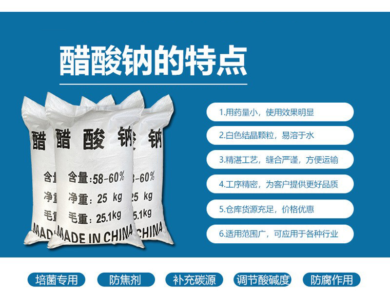 乙酸鈉又名醋酸鈉,是一中有機物,在市場上可以做為緩沖劑 媒染劑 等。乙酸鈉是一種絮凝劑,應于工業(yè)固液分離,在化工行業(yè),肉類防腐劑 印染印刷行業(yè)等。